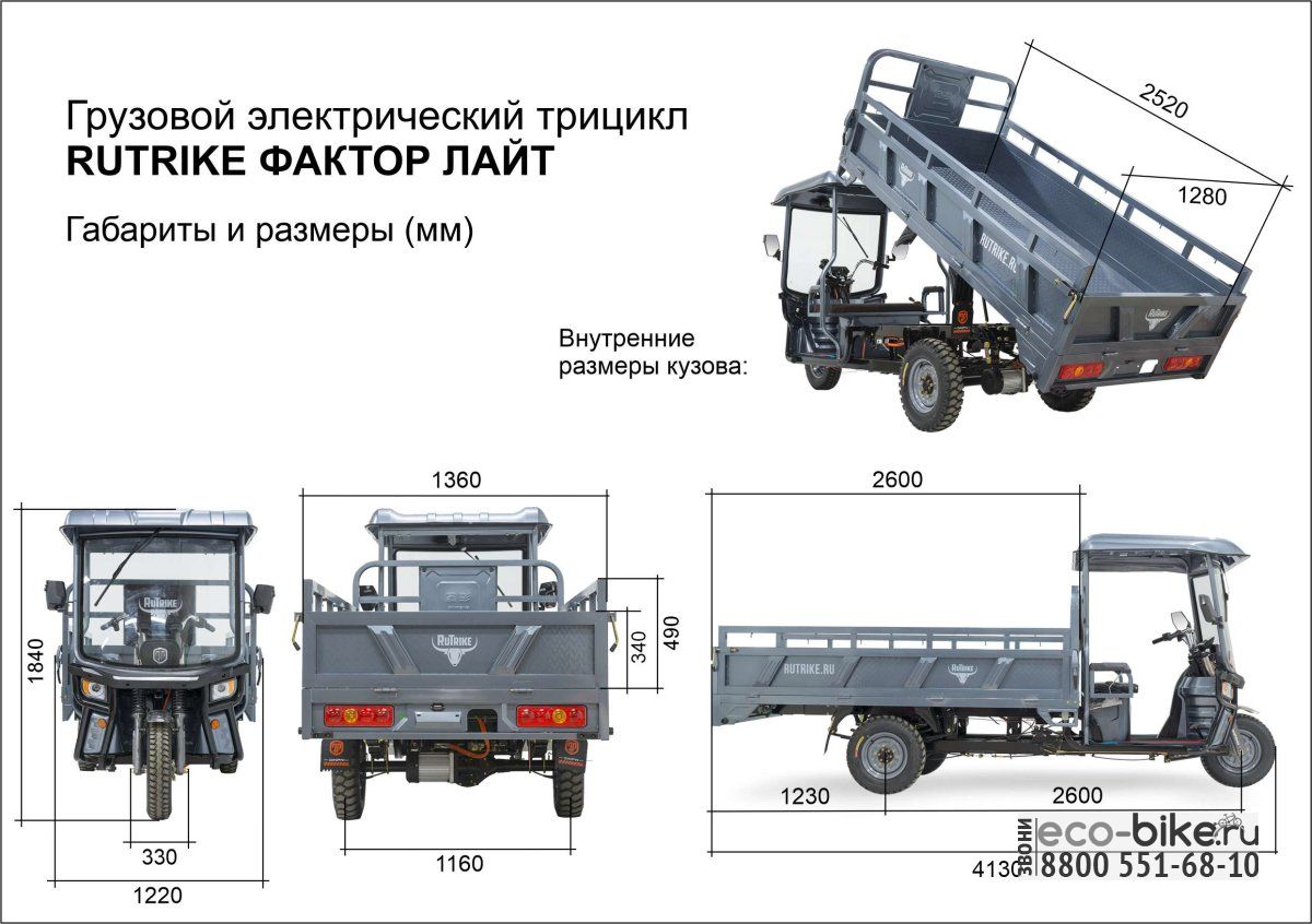Описание на Грузовой электротрицикл Rutrike Фактор ЛАЙТ 2600 60/72V2000W